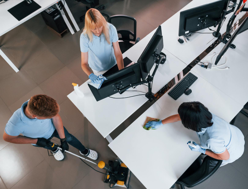 Reinigung von Arbeitsplätzen, Böden, Sanitäranlagen, Küchen und Konferenzräumen.